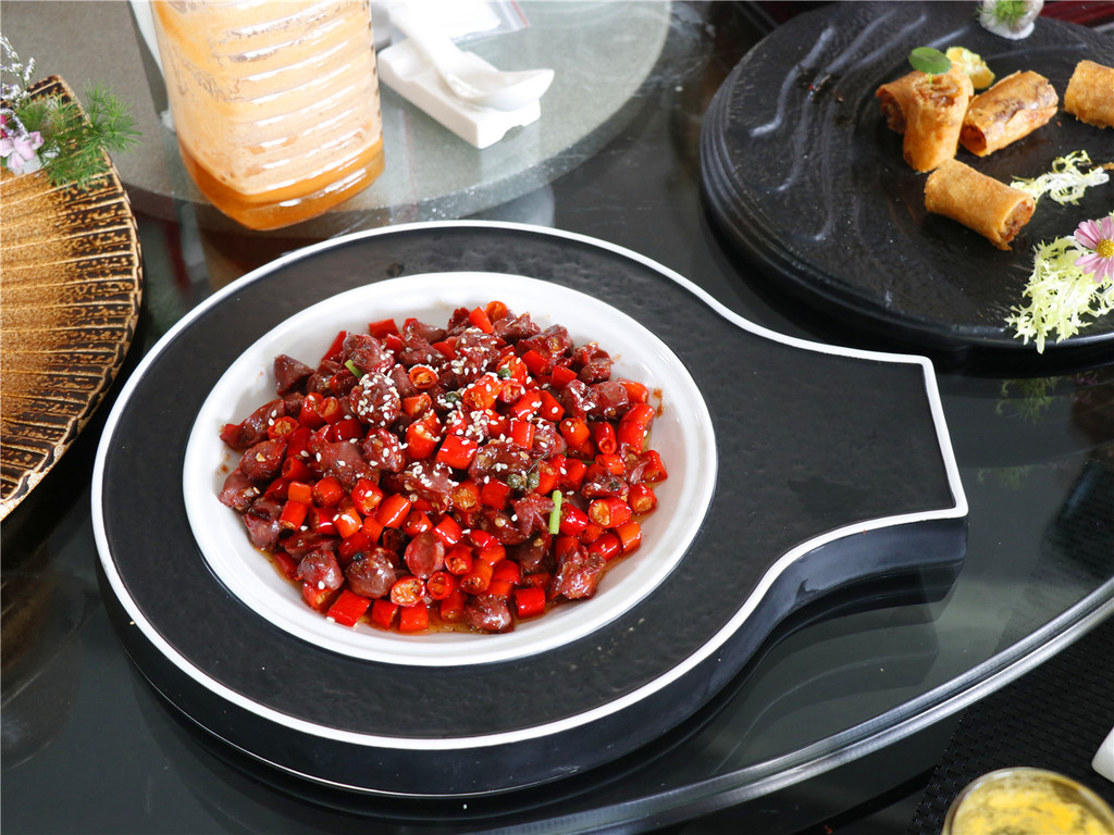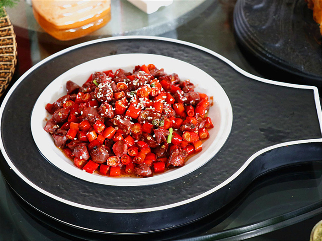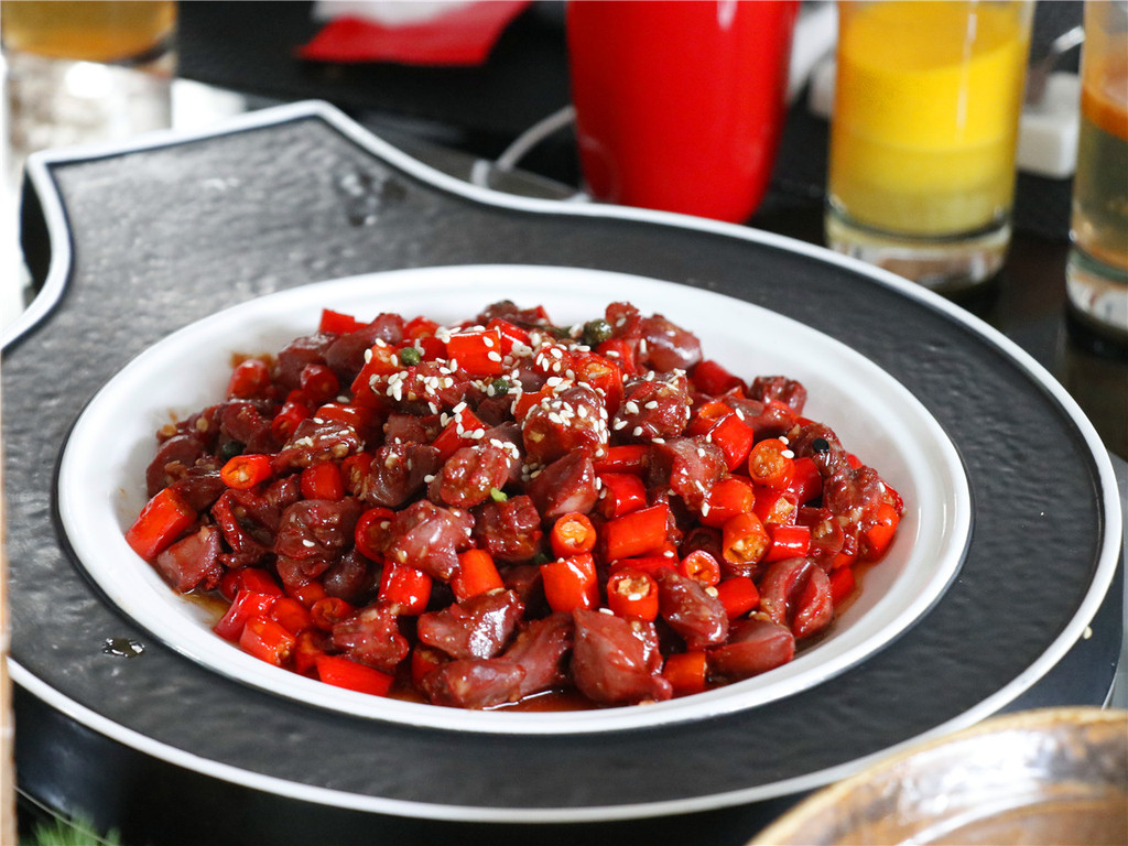 二代米椒鸽胗这是今天辣口和刺激的,鸽胗脆爽,而二代米椒和鸽胗大小相仿,一勺一口下去,直达胃壁的辣爽让整个人从舌头到神经都振奋起来。这个的辣度很震撼,也是调动味蕾神经的一道菜。