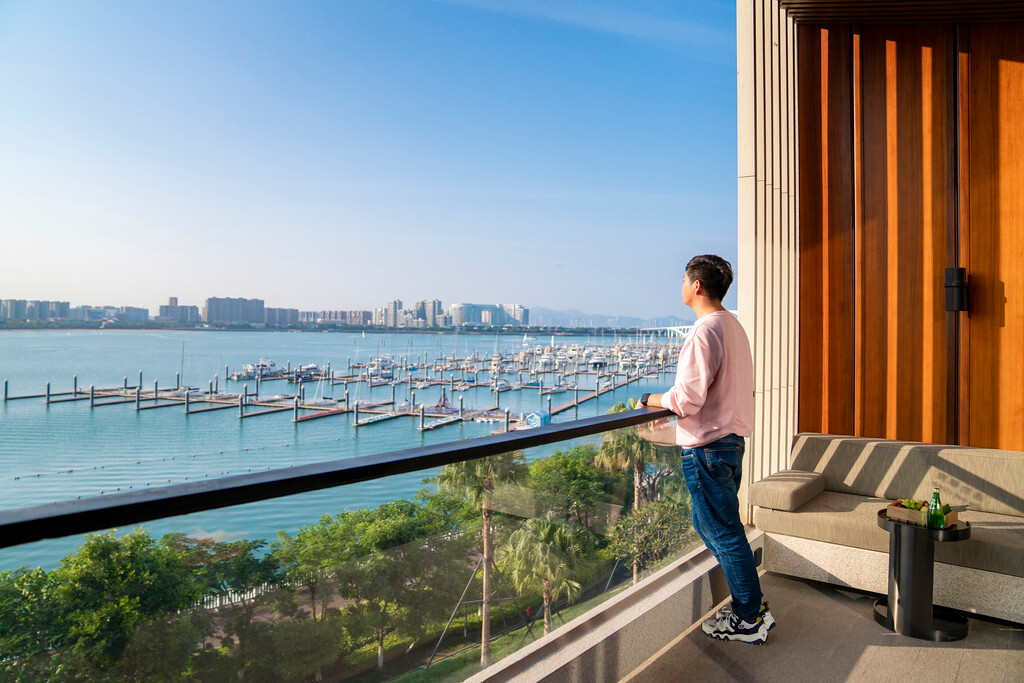 整个房间最喜欢的地方,自然是当属这个超大的阳光海景露台,俯瞰五缘湾海景风光,游艇码头的来来往往就在眼前,充满着生活气息的 厦门 城市景致。阳台上也提供沙发长椅和咖啡桌,休闲的时光微风徐徐,坐在这里眼看 厦门 ,繁华都市中的静谧时光,原来就是这样触手可及。