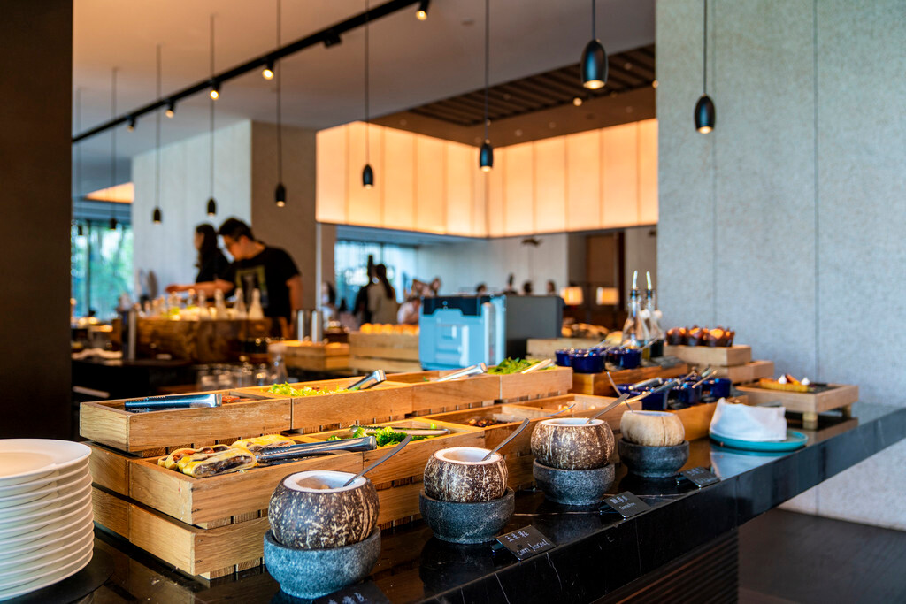 建议一定要来餐厅使用早餐,推荐坐在户外休闲长廊,上午的眼光暖暖洒下,还能享受五缘湾的海景风光,这样的早餐时光十分的惬意。