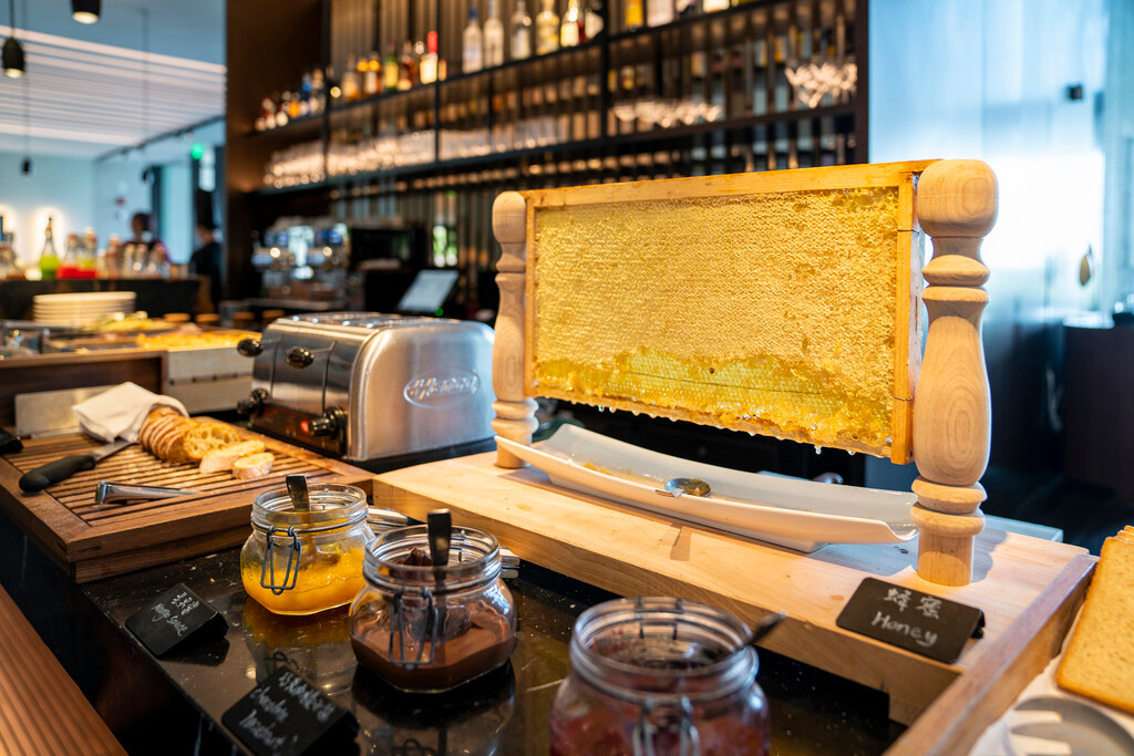 早餐采用的是半自助+点单的形式,自助部分既有中式也有西式,面包、果汁、熏肉、蒸饺、糯米鸡~~~,食材都是精选品质,当然重点推荐他们家的点单早餐,更是满足住客的热食所需。