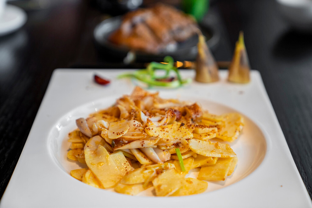 鲜笋象拔蚌,时令蔬菜搭配鲜活海产,鲜味增长无比。