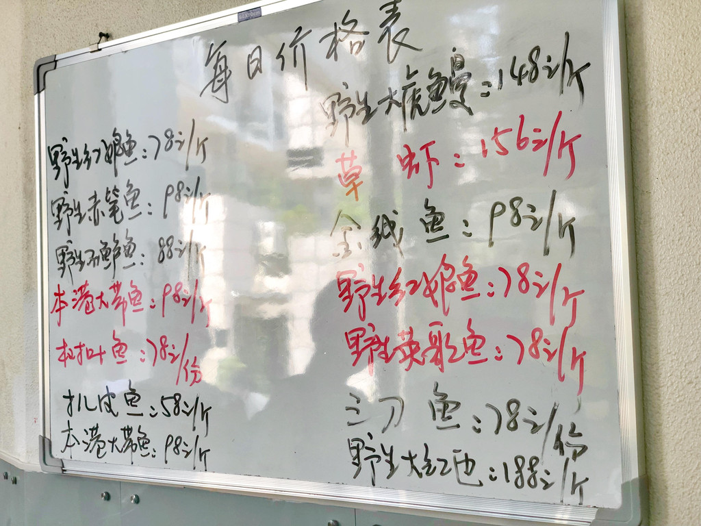 延续了十多年的火爆,厦门人喜爱的海敢小鱿鱼,排队才能吃得上难得一见的鸭嘴鱼,本尊长这样,兴奋的给它拍了张照,看着特别的新鲜。特别清晰明了的价格表,很方便点菜的人及时了解各种当日生猛海鲜的价位。