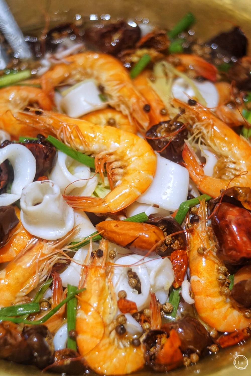 水煮小鱿鱼火爆了10多年的招牌水煮小鱿鱼里有着来自东山的鲜脆小管,特别的新鲜,点餐时别忘了为这道菜再加上半斤虾,新鲜的虾子和小鱿鱼相得益彰。充分改良后完全适合闽南人口味的“水煮”,是十分温和的“麻辣”,香而不辣,色泽红亮让人食欲大开,不仅仅是脆爽,还带着甜香,底部的配菜很好的吸收了虾子和鱿鱼的甜度,欲罢不能,不加思考的让人频繁的举筷入口。