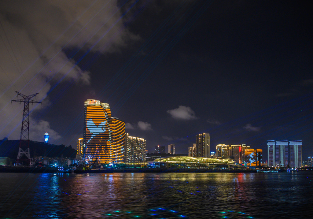 我和大家一样,都在翘首期盼激光灯光秀到来的一刻。九点多,灯光秀开始了,在船的两侧都能看到,吹着海风,看着美轮美奂的灯光秀,太美了。