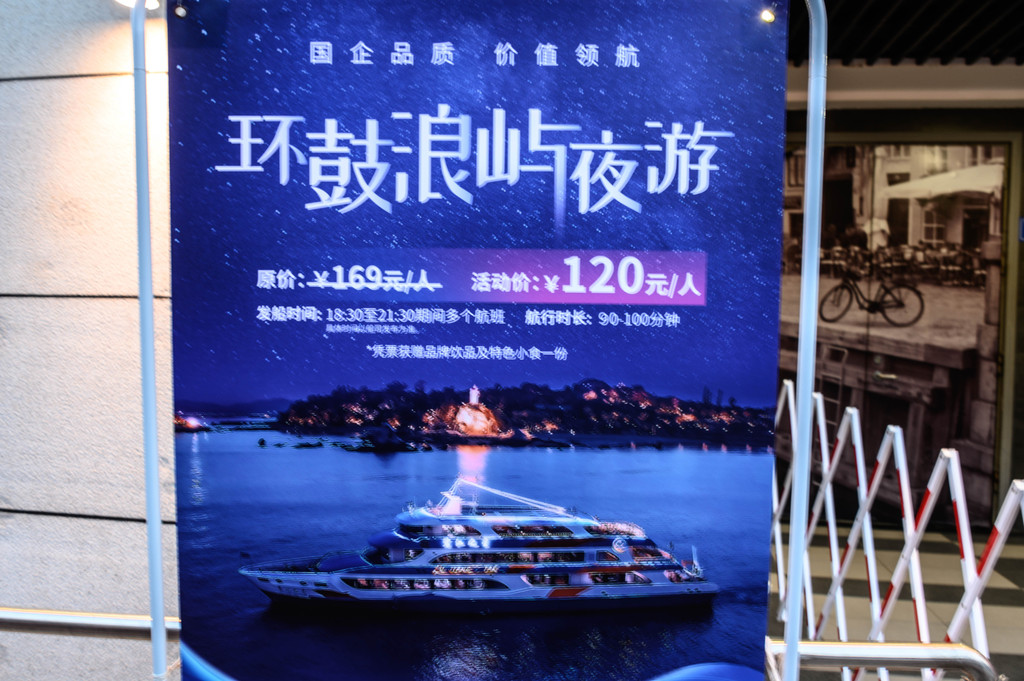 我们约在和平码头碰头,有四年没有来,我站在码头望着对面的鼓浪屿,一切还是那么熟悉。原来朋友带我参加的就是太古三号“环鼓夜游”灯光秀。在厦门坐船夜游是第一次,在船上看灯光秀又是第一次,据说这是全国首个文旅海上夜游灯光秀,我更加期待了。
