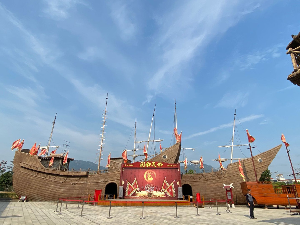 景区建筑都是采用闽南古厝的风格,室内有十来个展厅吧,展示了以前闽南人捕鱼、下南洋、宗祠祭祖等生活场景,可以了解闽南风俗习惯。每一个展厅都做的很用心,很好的还原了以前的传统生活片段。其中有两个体验的展厅“迷宫”和“斜屋顶”,印象比较深刻,在“迷宫”里真的有走不出去的感觉。外面还有分布一些动物观赏区,蛮适合家庭游览的。