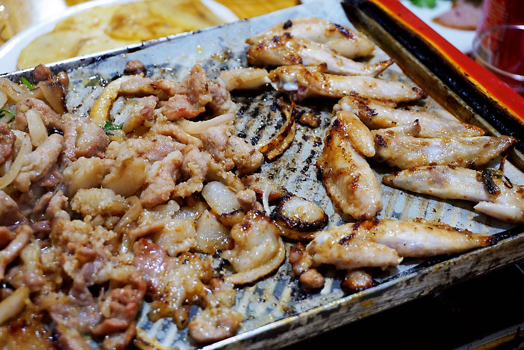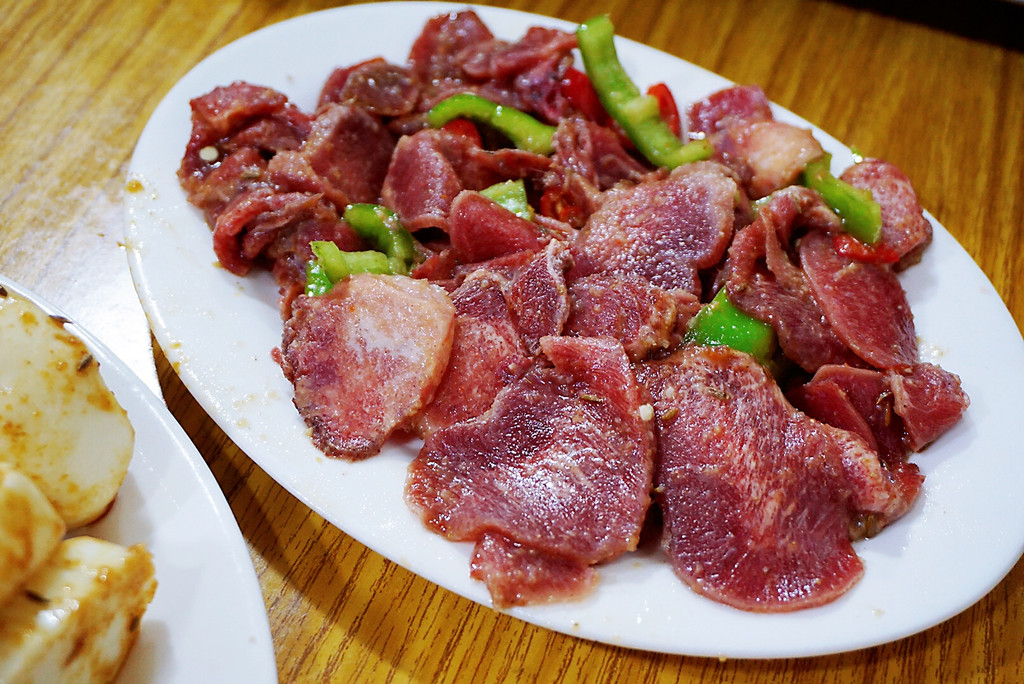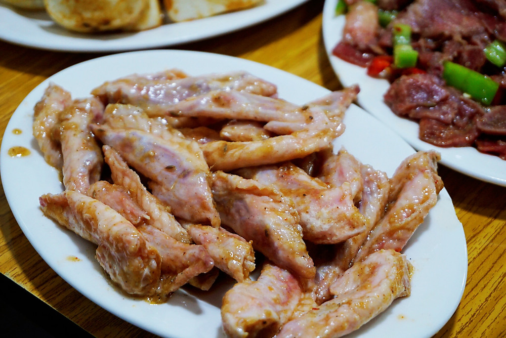 烤牛舌、烤牛肉、烤鸡翅统统都要点,一点都不能落下。如果想吃素也有啊,土豆片、鲜韭菜,总之烤肉盘一摆,菜一上桌就从心底冒出一句话:吃烤肉是件多么有仪式感的事情最~