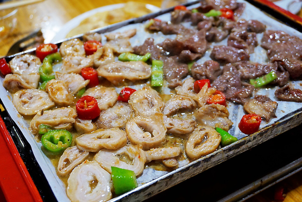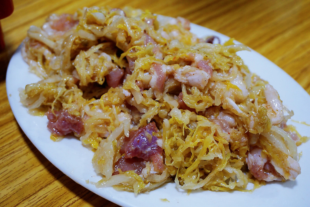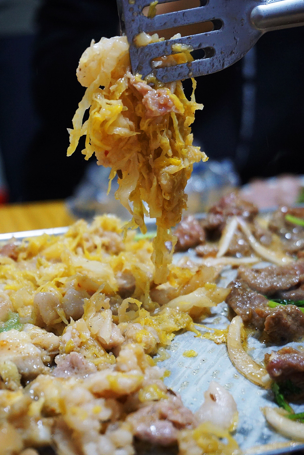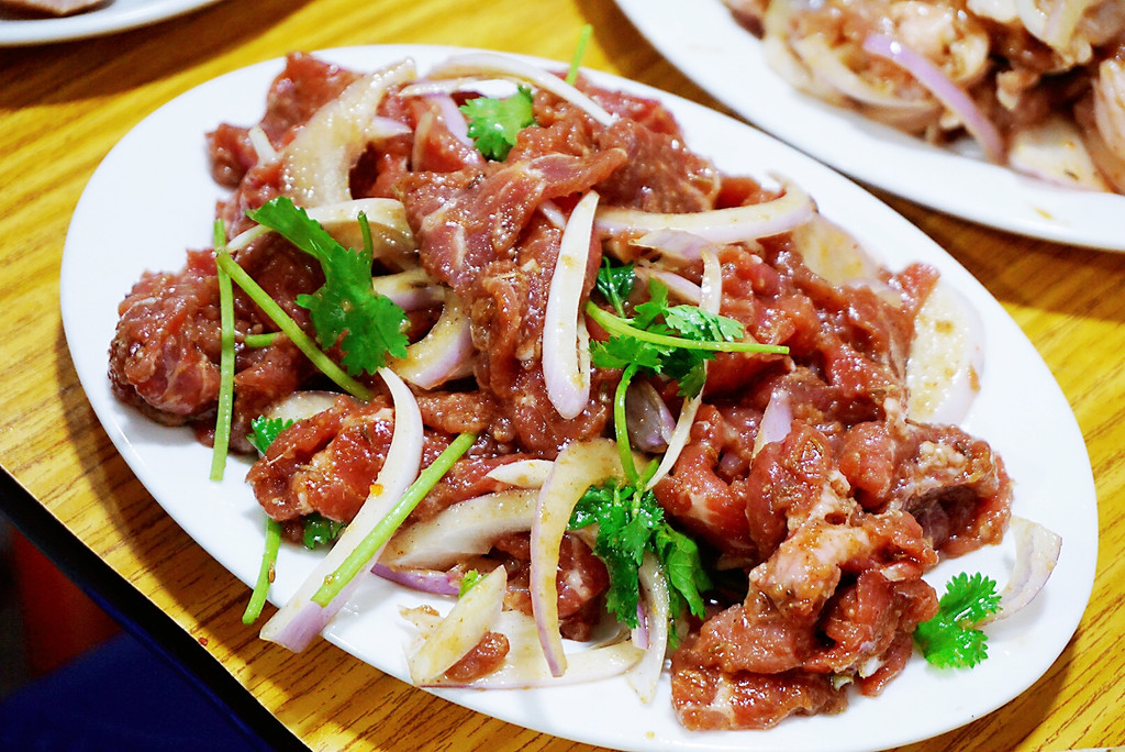 东北烤肉中,酸菜五花烤肉有着不可撼动的地位,那香醇开胃的酸菜吸饱了五花的肉脂,清脆酸爽又解腻,必需说一句,这才是东北烤肉的灵魂呢。