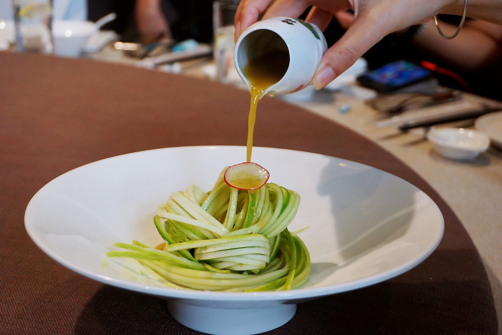 茶油捞水云丝:配了芥末茶油的酱汁,开胃而清脆、