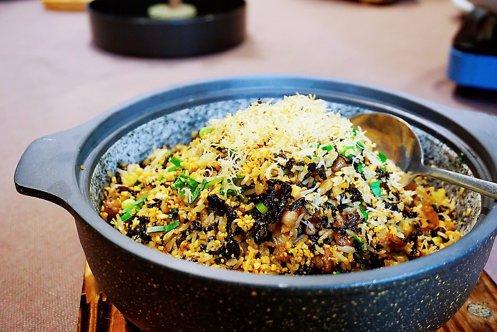 石锅紫菜炒饭:颗粒分明,饭香诱人,据说是一道连小朋友都会喜欢吃的主食哦。