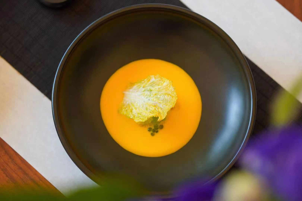 崇尚”自然“:餐厅追求食物的原汁原味,拒绝使用“仿荤”食品,而且只采用当季的新鲜蔬果,食材之新奇是很多人平常难以见到的。