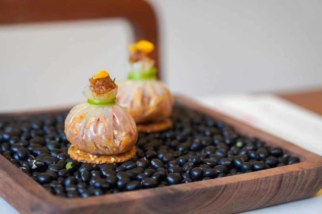 具有特色的宣纸上用餐,独特精美的装盘就连餐巾纸也是用素色的再生纸,大大的落地窗、白墙灰瓦的新中式风格很是新潮,细节讲究极致的素雅、自然、环保,让年轻人更加享受素食文化。