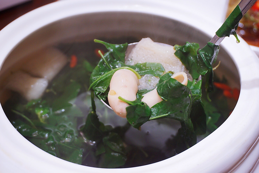 养生枸杞叶炖汤,加入了枸杞叶和竹荪还有小肠,小肠是煮到口感将将好,里面包裹着莲子与马蹄,有点惊喜哦。