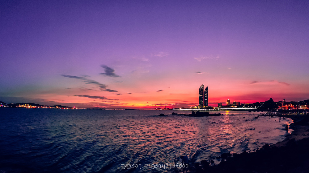 从黑幕一直慢慢地出现蓝调,天空逐渐变得越来越唯美,而沙滩上不断地传来阵阵欢呼声。