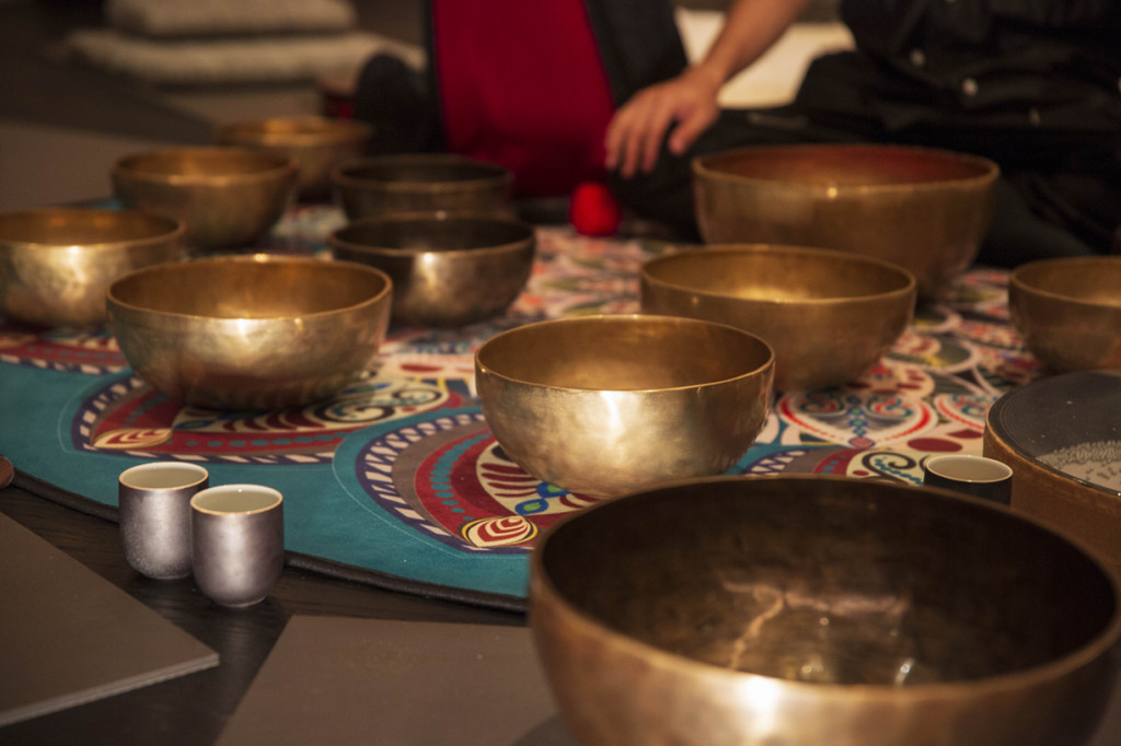 与颂钵老师对坐,闭上上双眼感受敲打滚磨颂钵带来的悠远低沉的音频和渐明渐暗的振频,瞬间一种超脱的度假感油然而生,让心境达到释放与平衡。