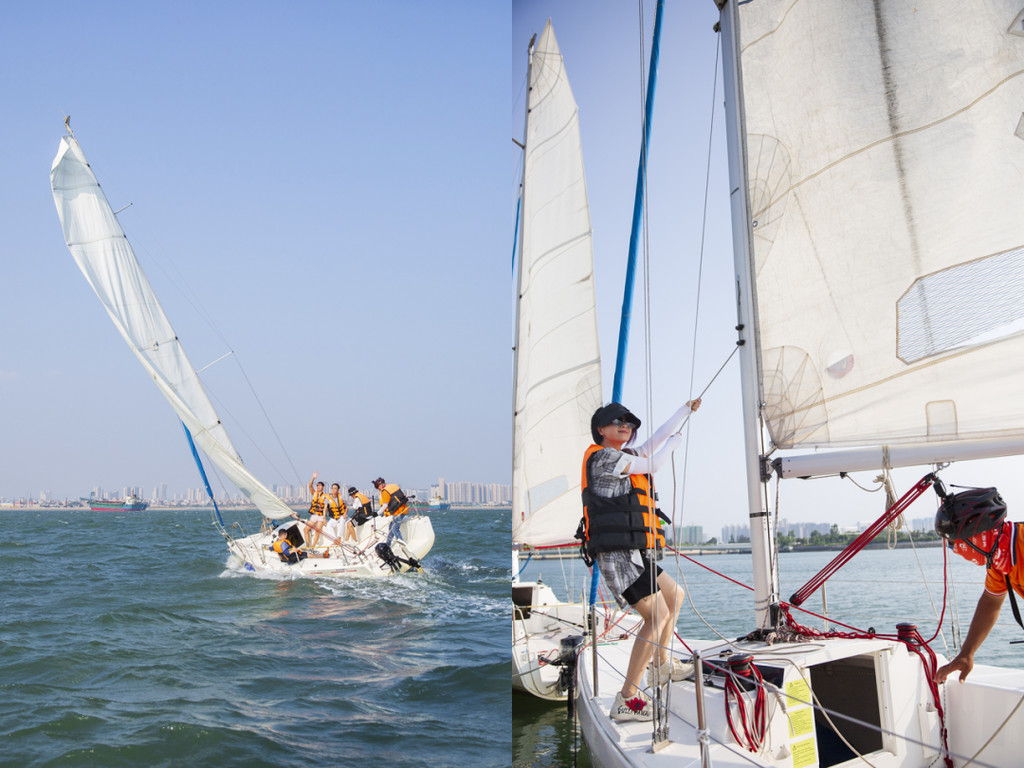 乘坐帆船非常安全,但教练偏偏喜欢让搭乘者体验刺激,他会根据风浪的状况来控舵,让帆船左右倾斜,无论坐在那一侧,你都有可能体验到“湿身”的快乐。