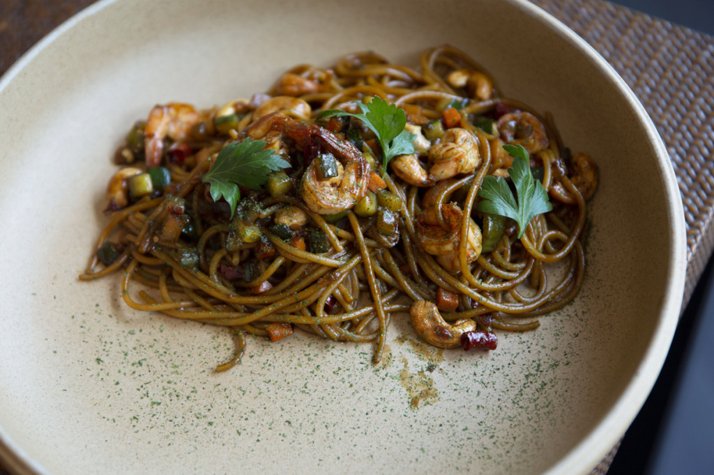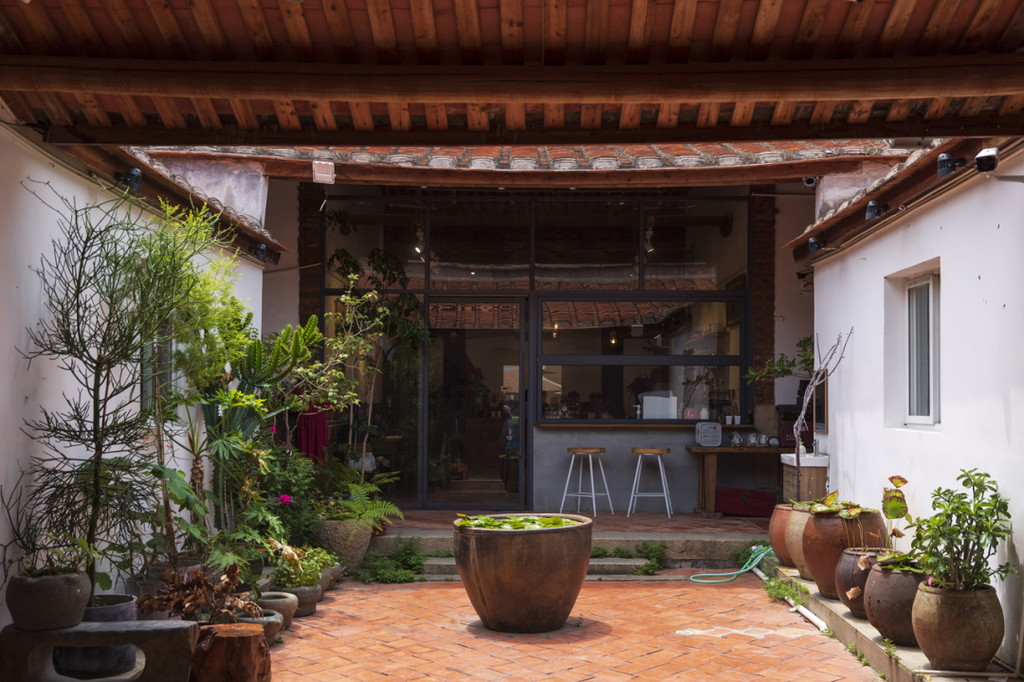 店铺开在有一进院落的古厝中,充沛的绿植让院落多了些生机,非周末的时间,店里客流量不多,一份罗勒饭和一杯咖啡之后,空间又回到安静的状态,这里的确是个可以坐着看书或者发呆的好地方。