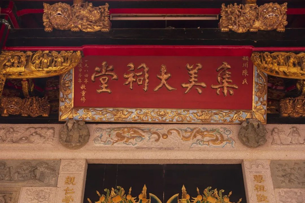 在大社有不少古厝,这些建筑的标志性特色是燕尾脊、红砖墙,是闽南建筑的活标本。在古村的中心可以看到集美大祠堂,坐北朝南,前后两殿,中有天井相隔,两侧设有过廊。值得一看的是门廊边抱鼓石和墙面镶嵌的人物故事、麒麟瑞兽石雕,以及梁架上的木雕和燕尾式的房檐。