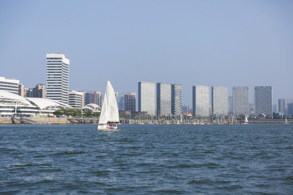 七尚酒店外的海湾是游艇及帆船俱乐部,步行七八分钟即可抵达出海口。在教练的指导下,坐上帆船随风起航,开始在海湾中环游一个小时的旅程。