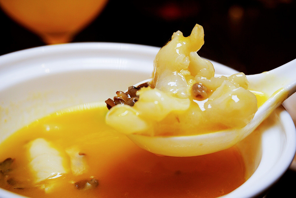 闽南菜里不能错过的经典姜母鸭,鲍鱼爽脆,姜母鸭香嫩,煸制得半干不柴,咸香浓郁,口感丰富。