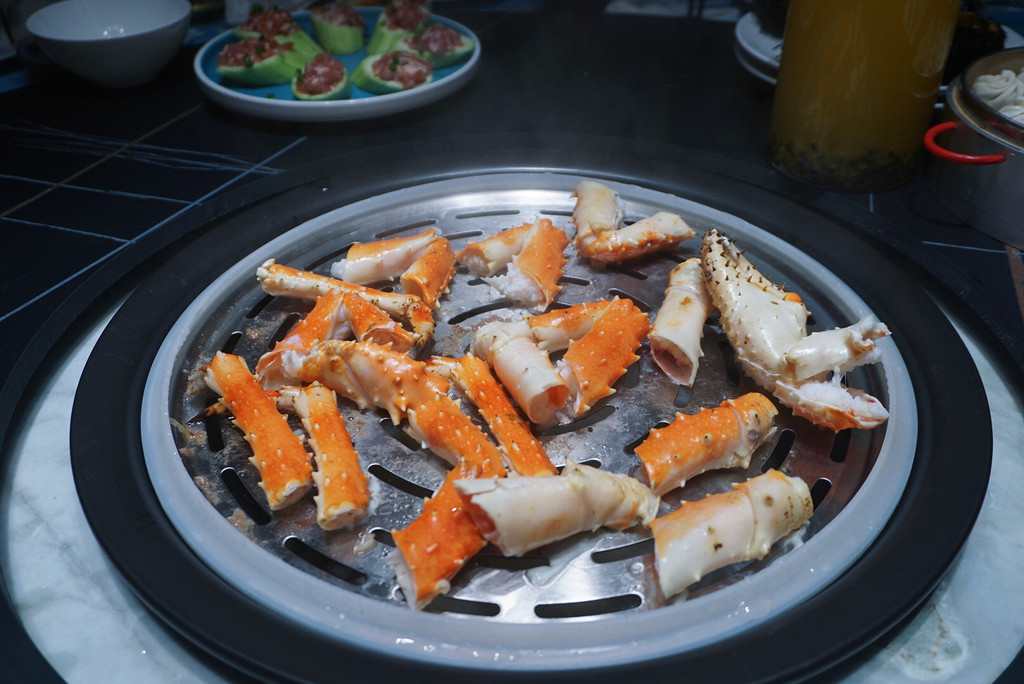 新鲜的食材用最简单的方法就是蒸,臻府使用蒸汽火锅,隔着透明锅盖,看着食物变化,直到蒸熟,每一种海鲜蒸的时间不同,服务员会帮忙设置好时间,蒸汽的作法充分保留食材水分及营养,新鲜看得到。