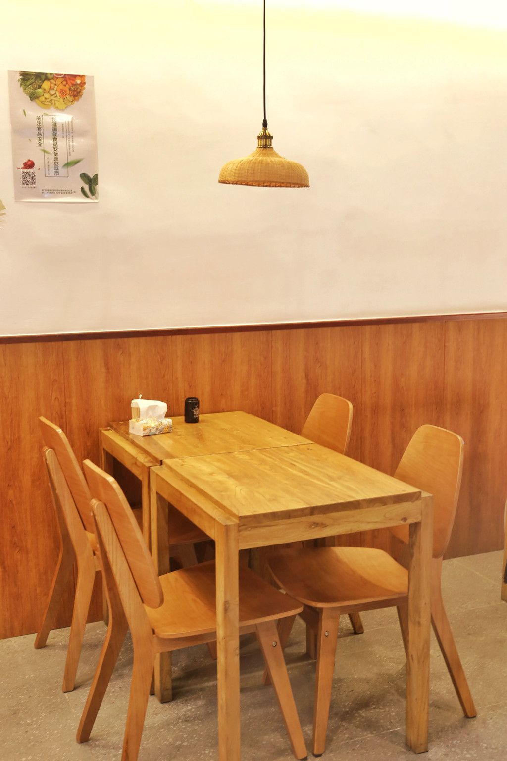 为了方便周边居民能有个小聚的去处,现在店家在不远处的长青北里开了家原木风的小馆。空间虽然仍然不算大,但开放式的操作台、惬意的木质桌椅,大有几分家庭食堂的味道。