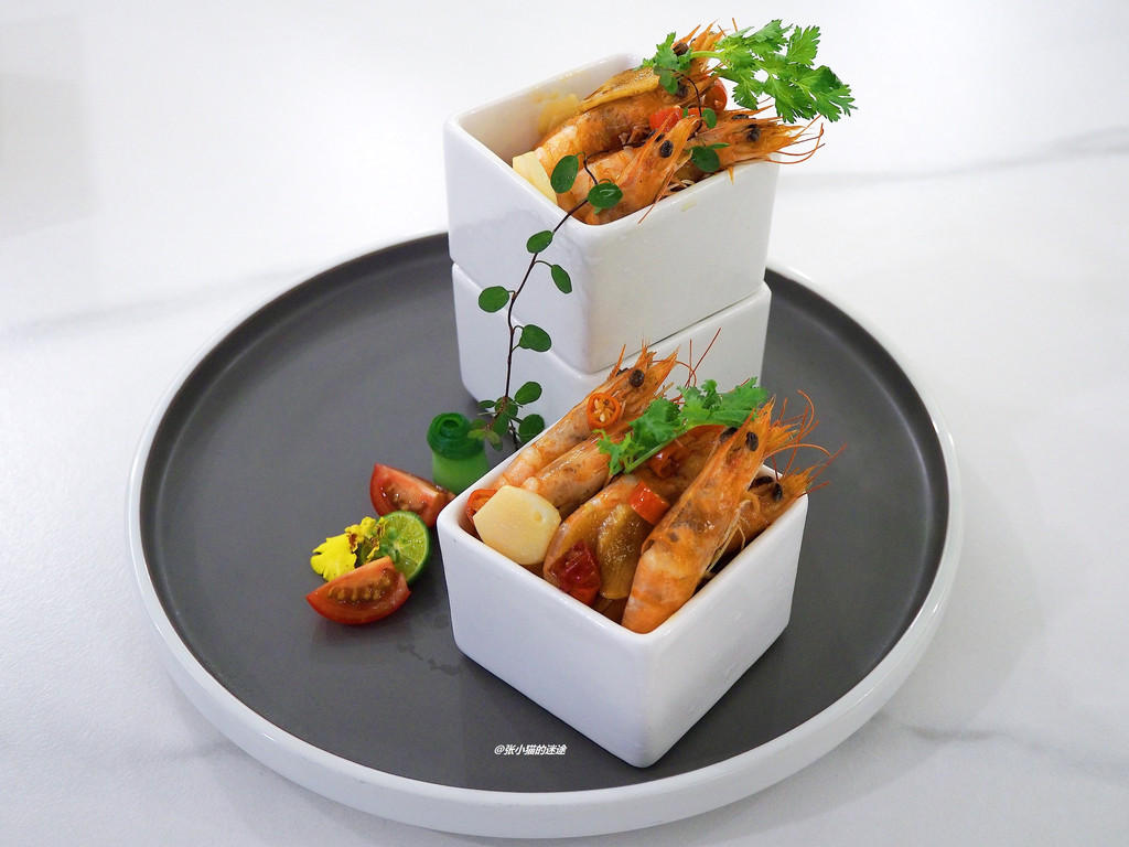 开胃前菜——泰式江白虾、柠檬海蜇头、老醋花生,每一道都花式精致摆盘,很唤醒味蕾。