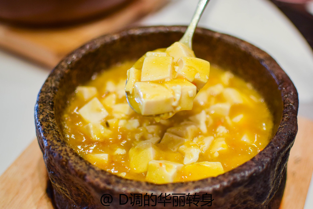 蟹皇嫩豆腐 | 石锅的温度让豆腐在锅中“吱吱”狂热的沸腾着,使蟹黄嫩豆腐长时间保持香气四溢的状态。蟹皇与嫩滑的豆腐在石锅里相互交融,用来盖饭能多吃一碗。