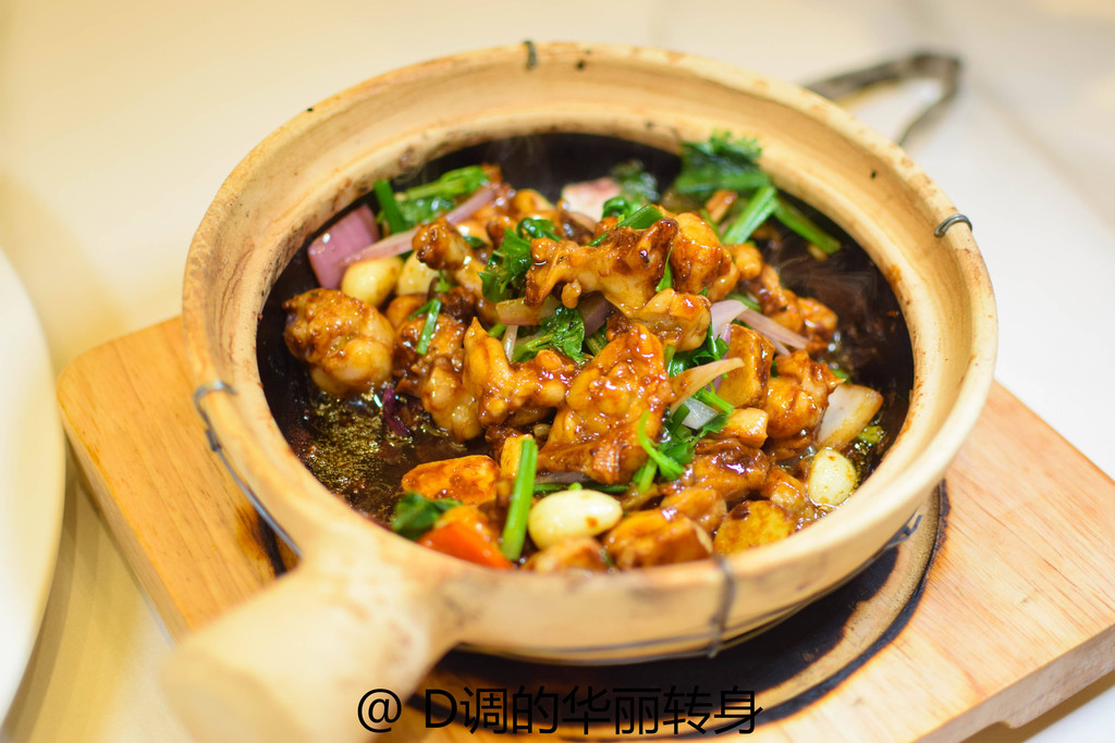 啫啫田鸡 | 当田鸡放于瓦煲中,经过极高温的烧焗后,瓦煲中的汤汁不断快速蒸发,高温激发出极致柔嫩的口感,田鸡酱香十足。