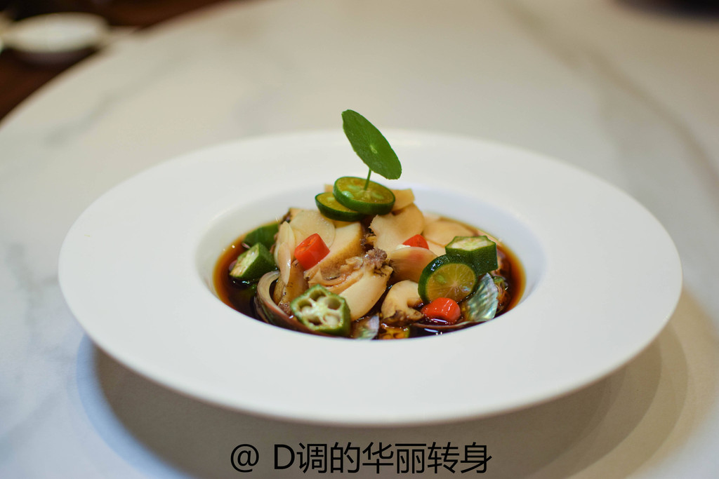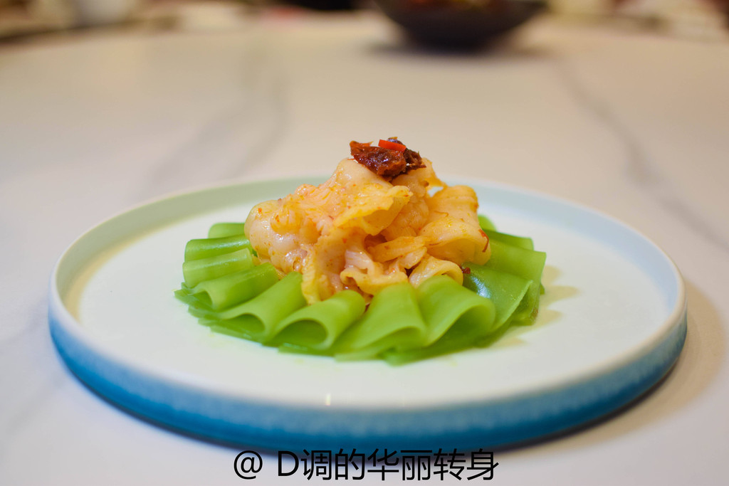 捞汁鲜鲍鱼 | 捞拌汁是这道菜的灵魂,酸甜鲜咸,还带点微辣,吃起来冰冰凉的,鲍鱼非常新鲜鲜嫩,爽口弹牙。
