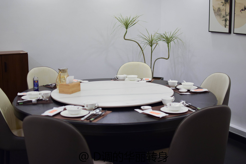 装修时尚、大气,舒适的餐椅,通透的光线,每个包房的餐桌上还摆有一瓶颜色素净的鲜花,在这里吃饭,那可真是一种享受啊。