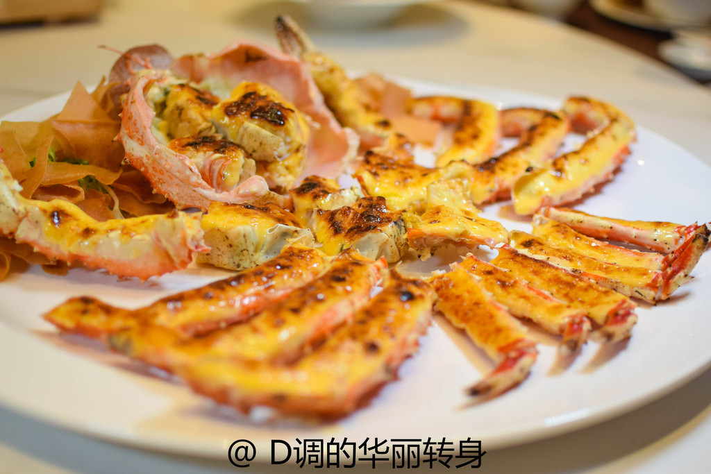 帝王蟹 | 摆盘霸气有面!新鲜的蟹脚剪开一半留一半,上面一层层厚厚的芝士酱,体积巨大的帝王蟹肉质鲜嫩肥美,让爱吃蟹的吃货,一次性过足蟹肉的瘾。