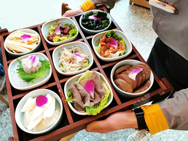 被菜名吸引就点了,端上来原来是九种菜品小碟,有鲜毛肚、千层肚、坨坨肉、鸭血、虾滑、腐竹、海带芽、山药等,如果一两个人吃,点一份也不错。
