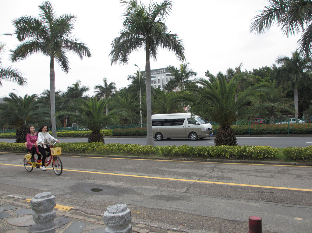曾厝垵这段的马路是环岛南路,马路的景观效果相当不错,有不少的游客租骑自行车。