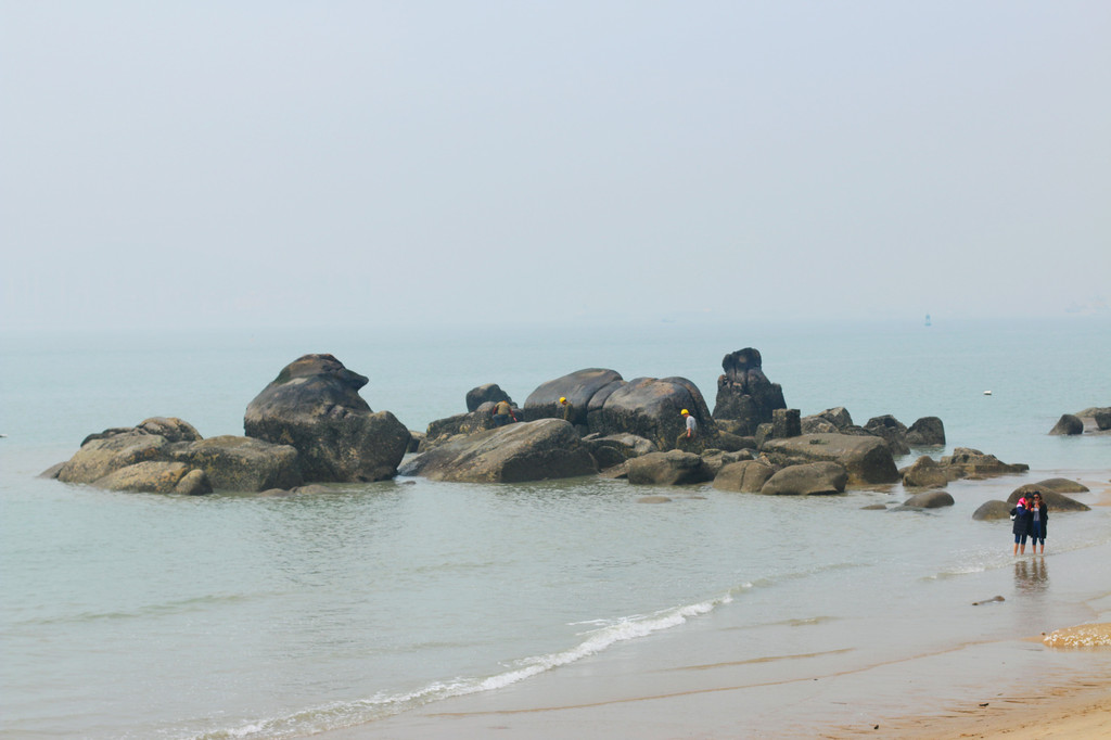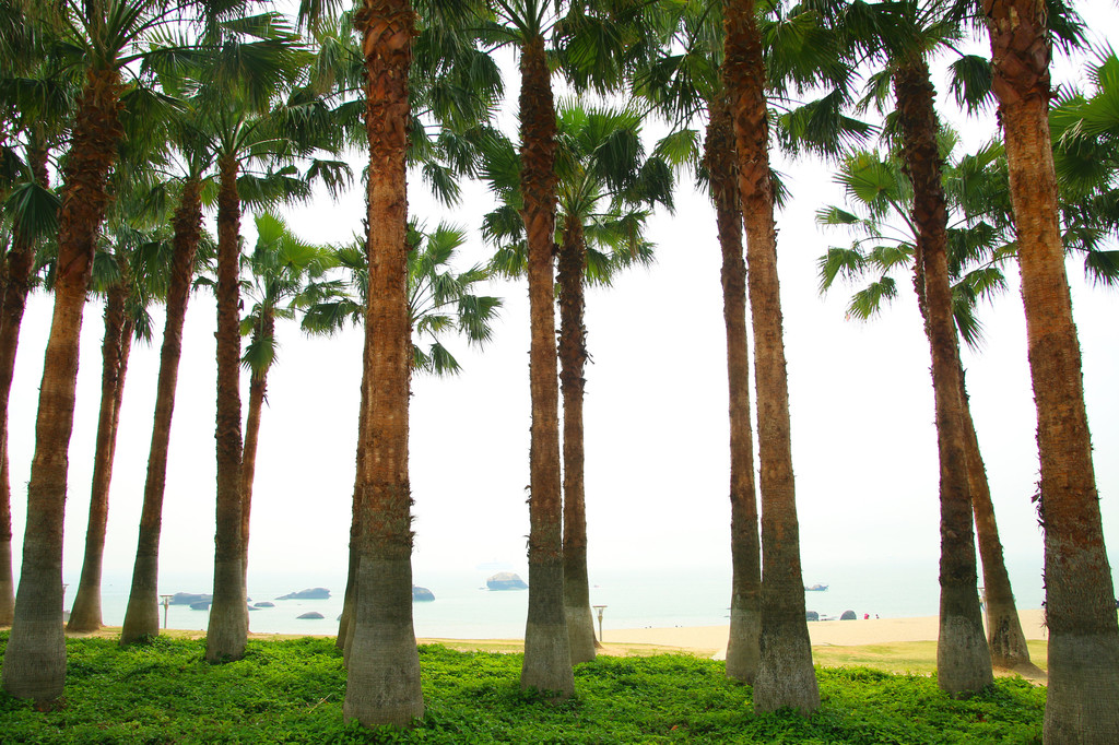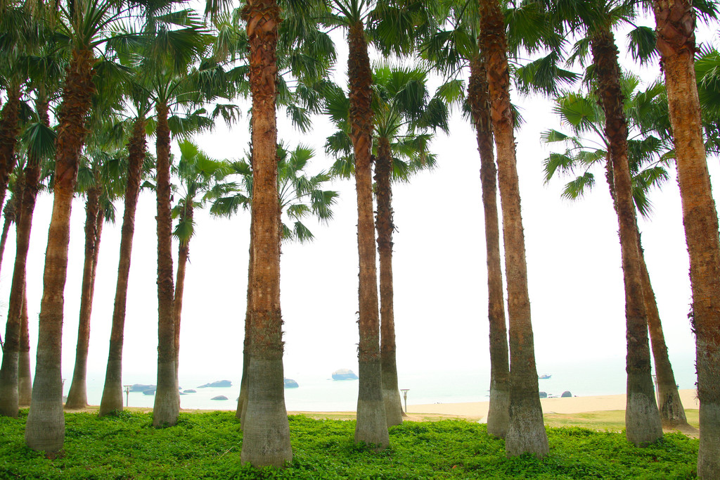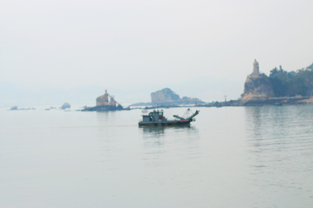 从下午吃到黄昏,约定晚上再战,乘沙丁鱼巴士返回珍珠湾,挤得我都差点怀孕。幸好幸好,停在棕榈树下的单车依然健在,厦门真是路不拾遗,因为我上锁了,想拾得砍树。单车在手,说走就……环岛车流堵得几乎凝固,骑行者像等着产卵的洄游鱼,密密麻麻。海滩游人如织,海面扁舟点点,对岸建筑藏在薄雾中若隐若现,如同发生海市蜃楼。