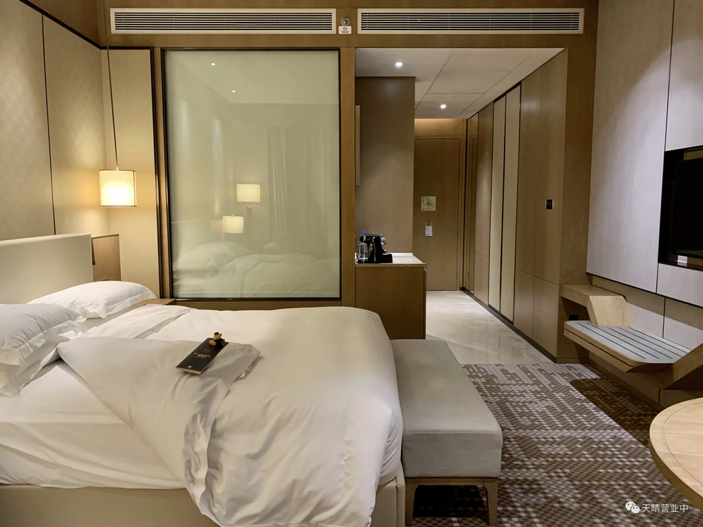 共有301间豪华舒适的客房与套房,且大多数的房间都能将湖景与海景尽收眼底,也全都配置电动窗帘、电动浴帘、蓝芽音箱、智能马桶。和厦门岛隔海相望、紧邻着湾区的梦幻景观,或许是因为身在岛外,下榻的客人总是没那么多。但凭良心讲,论房价、服务、餐点、硬件维护,海沧大波吹的表现都相当优秀。而行政湾景客房面对着大片落地窗,用昏黄的灯光打造出温馨的氛围,空间大小入住1至2人也相当惬意。累计度过十几个夜晚,每次来厦门海沧正元希尔顿逸林酒店,我几乎不甘愿离开房间。套着浴袍在房间里发懒打混、追追剧、写写酒店入住报告、HH再溜去酒廊吃几盘喝几杯... 我想,这就是刷房的美好吧。