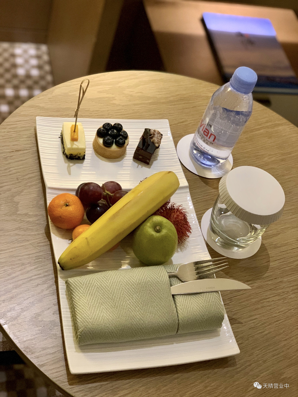 钻卡欢迎果盘始终如此厚道,水果搭配三款甜点以及evian水~