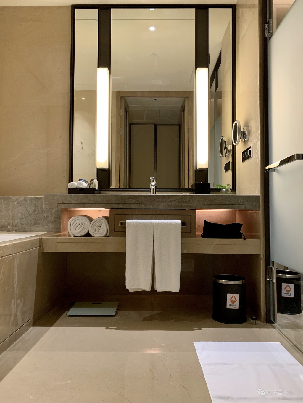 海沧的卫浴镜子很大,而洗手台也延伸至左侧,所以跟我一样保养“给西”很多的朋友会很喜欢!瓶瓶罐罐摆满满的没有问题喔!而浴巾是比较长宽的(50x90),吸水性也强,长发的朋友会感到好用~~~