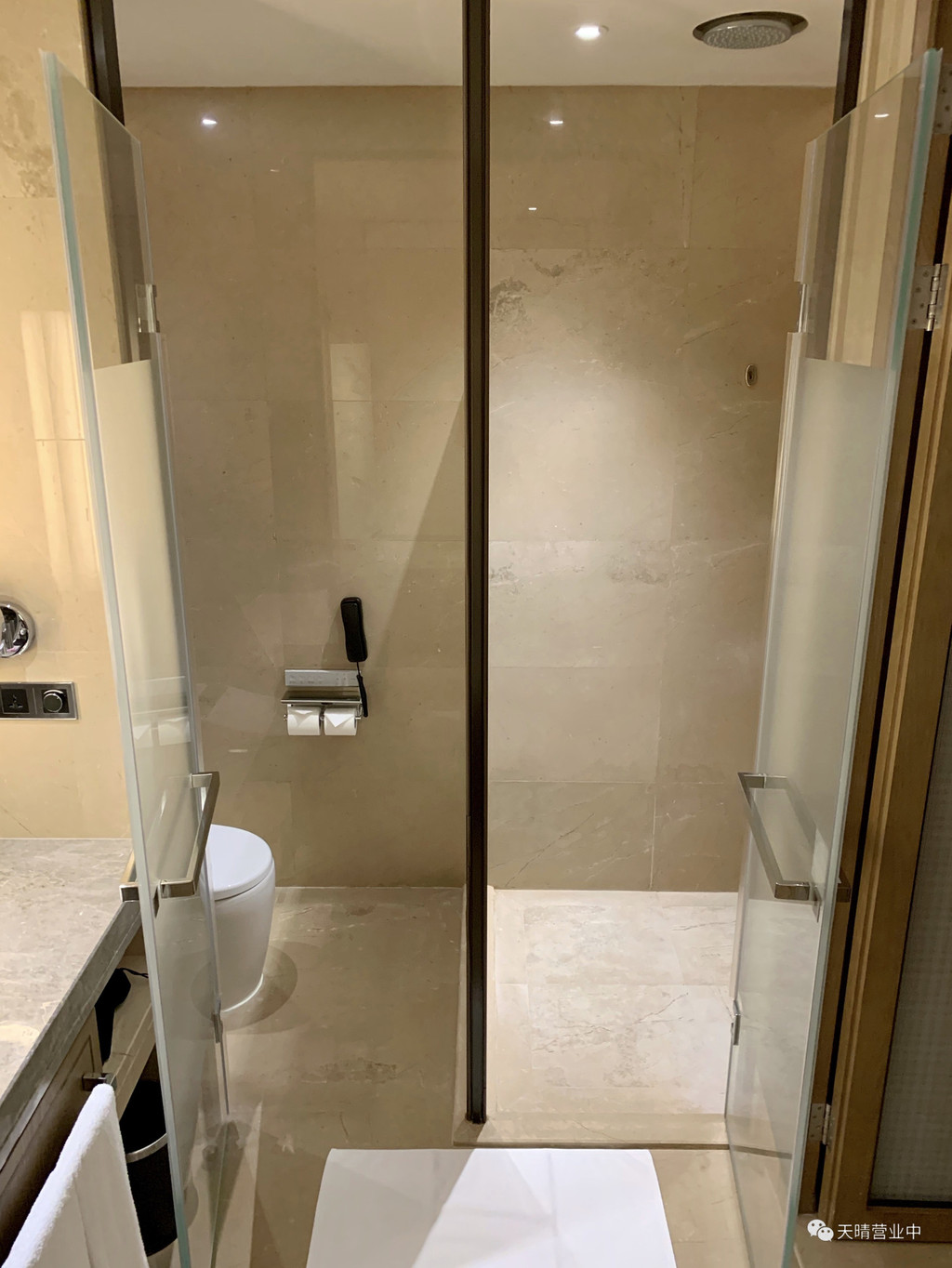除了顶喷水压是我见过最给力的之外,本间还有个小优点是淋浴间的门槛高度:看似一件很小的事情,但每当碰上没有预留空间、打开淋浴门会把踩脚垫连根拔起的酒店我都会觉得很困扰!!!真的很多间酒店都是这样诡异的设计的!!!但是在海沧,你可以放心开关淋浴间的门也不会影响到踩脚垫喔~