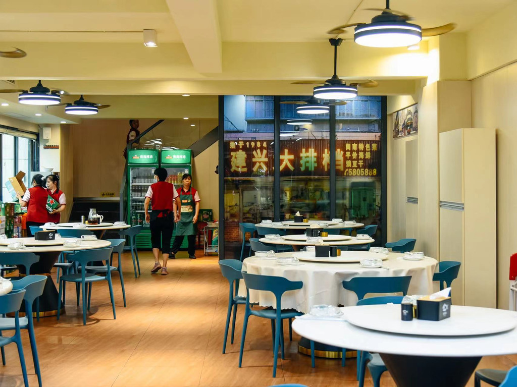 湖滨四里建兴大排档,自1984年开业,从做早餐开始到有了午餐,到后来的海鲜大排档,直至去年旧城改造搬迁。如今在滨北新港广场焕然一新,雅致时尚,带着在厦门少见的庭院,俨然成为筼筜湖畔的高端海鲜餐厅,尤其是红花蟹六吃令人惊艳,这滚烫的人间烟火不正是和董宇辉老师说的一致嘛……