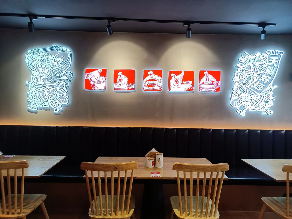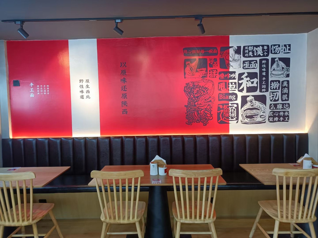 万象城边上的这家新开天赐好面,是喜庆的国潮风装修,高高挂的红灯笼,红色主打的主色调,有一种小而美的精致感。一楼是卡座,二楼有两到多人位,墙上一些陕西风俗的设计很有氛围感。