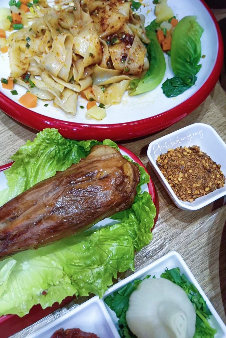 小菜还有炝莲藕和闽南醋肉,八百里秦川的味道入闽随俗了,应景了墙上的那句“爱biang才会赢”。