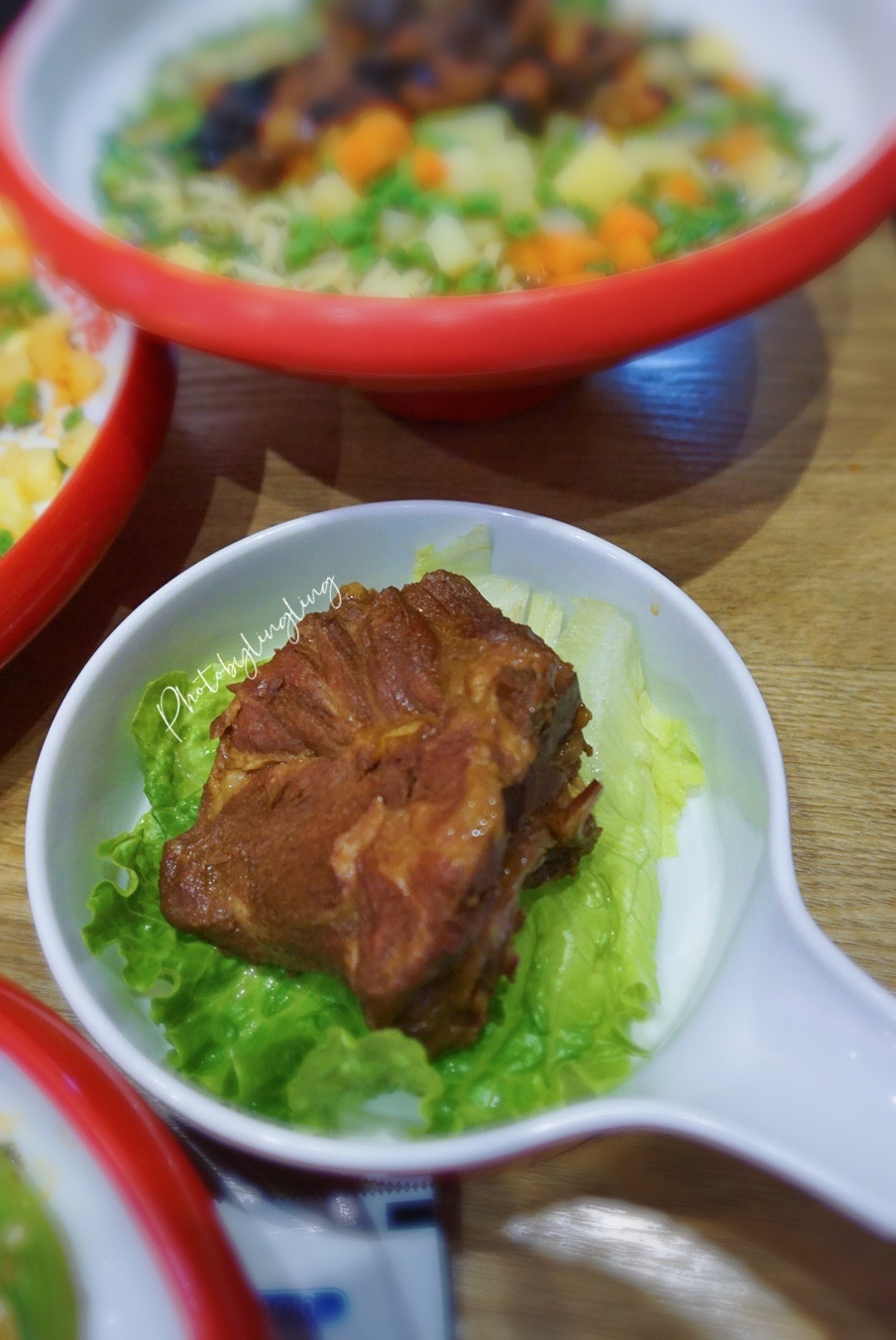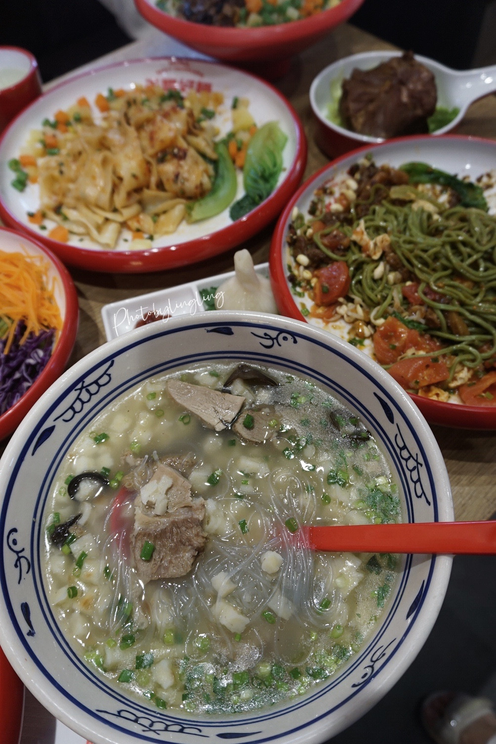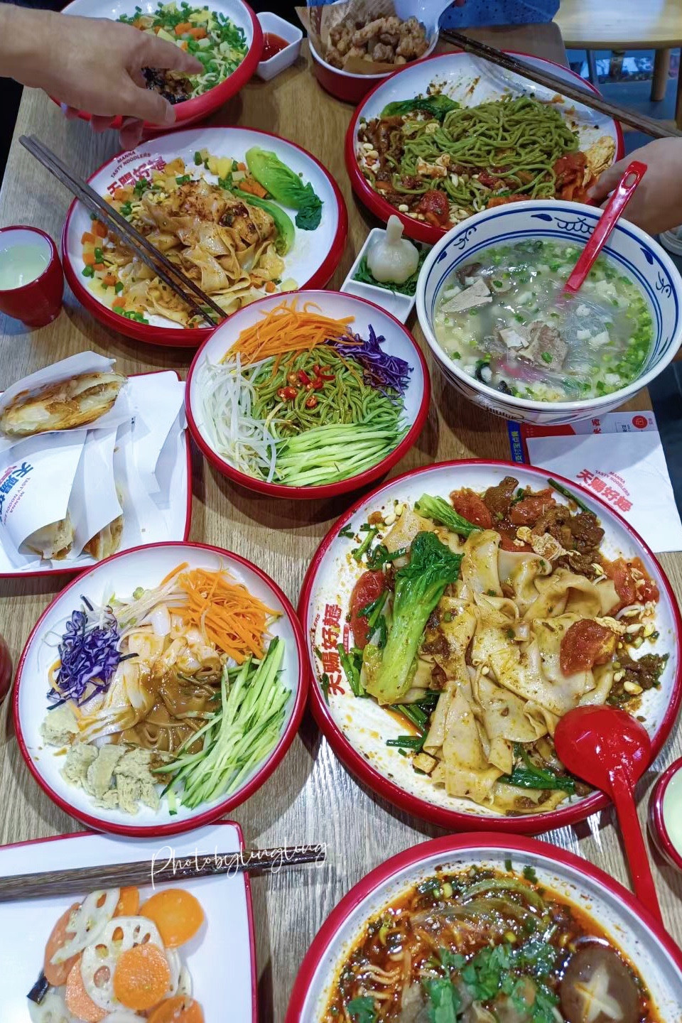 朋友多,一起刷个菜单,酸汤肥牛面、霸道凉面臊子面、二合一油泼菠菜面,通通都上,肉也好吃,羊棒骨、酱大骨,出品不错。
