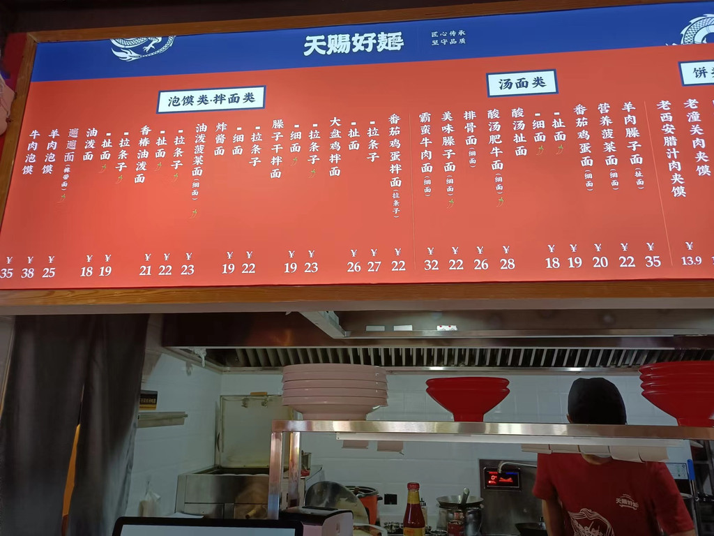 天赐好面 陕西手工面大师店,这种面馆虽不大但很适合街边社区,品种丰富,价格适中,品类丰富,好吃不贵。