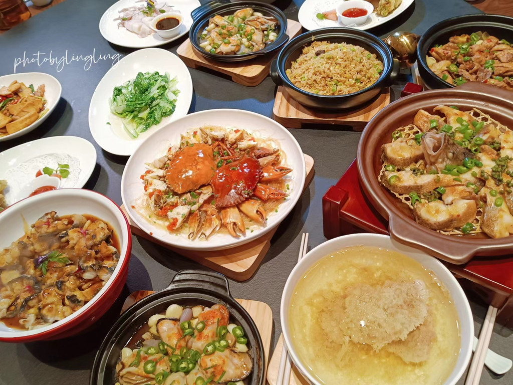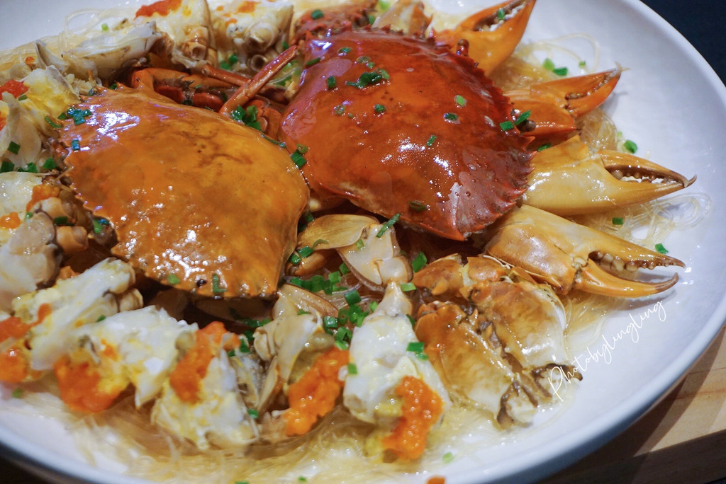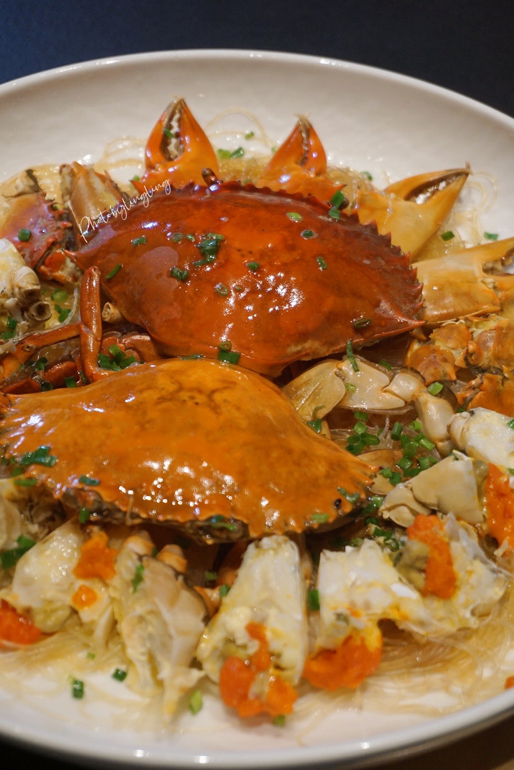 粉丝蒸膏蟹:黄登登的蟹肉嫩膏黄,就边盘底铺的粉丝都鲜香入味,吃完吮手指。
