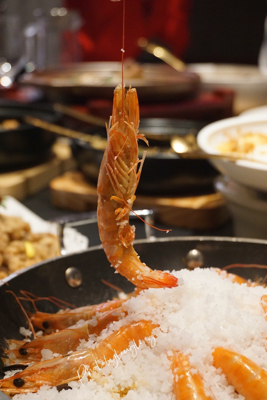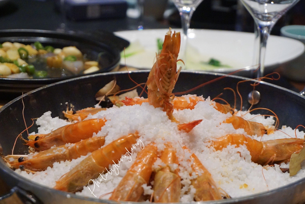 盐炝虾:雪白的盐红彤彤的大虾,虾肉饱满弹牙,咸鲜令人回味。