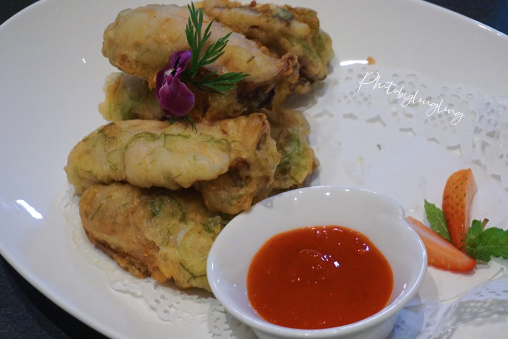 海苔炸巴美亚大蚝:肥美的蚝肉用海苔糊包裹,外酥里嫩,滋味层次丰富!