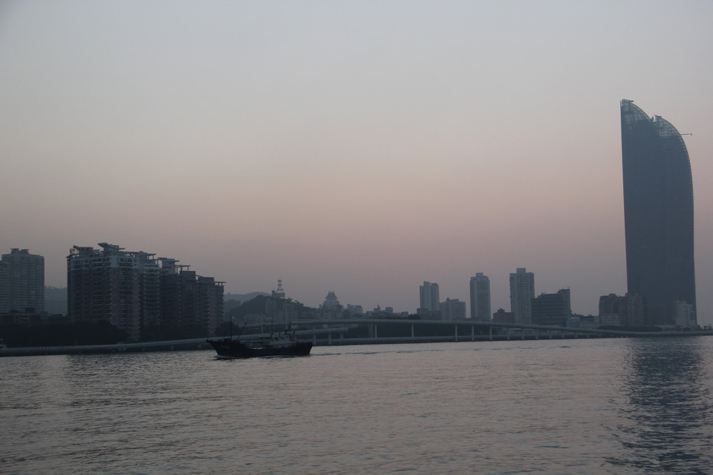因为我们出游时间只有4天,为了利用好这四天时间,第二天早上六点钟准时出发,五分钟跟着手机导航走到公交车站,半小时到轮渡码头,因为走得比较早几乎没有堵车,所用时间和网上说的打车时间几乎相同。在车上边看风景边观察了一下车里的厦门当地人,我发现厦门人个个都长得很小很秀气。我俩站在那,人高马大的,一看就知道不是本地人。