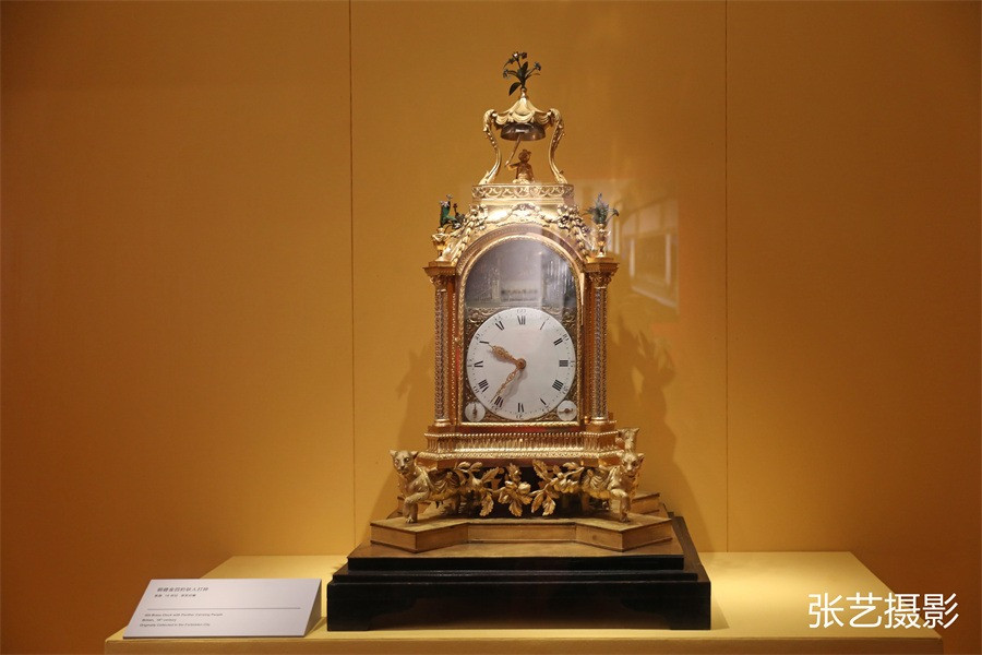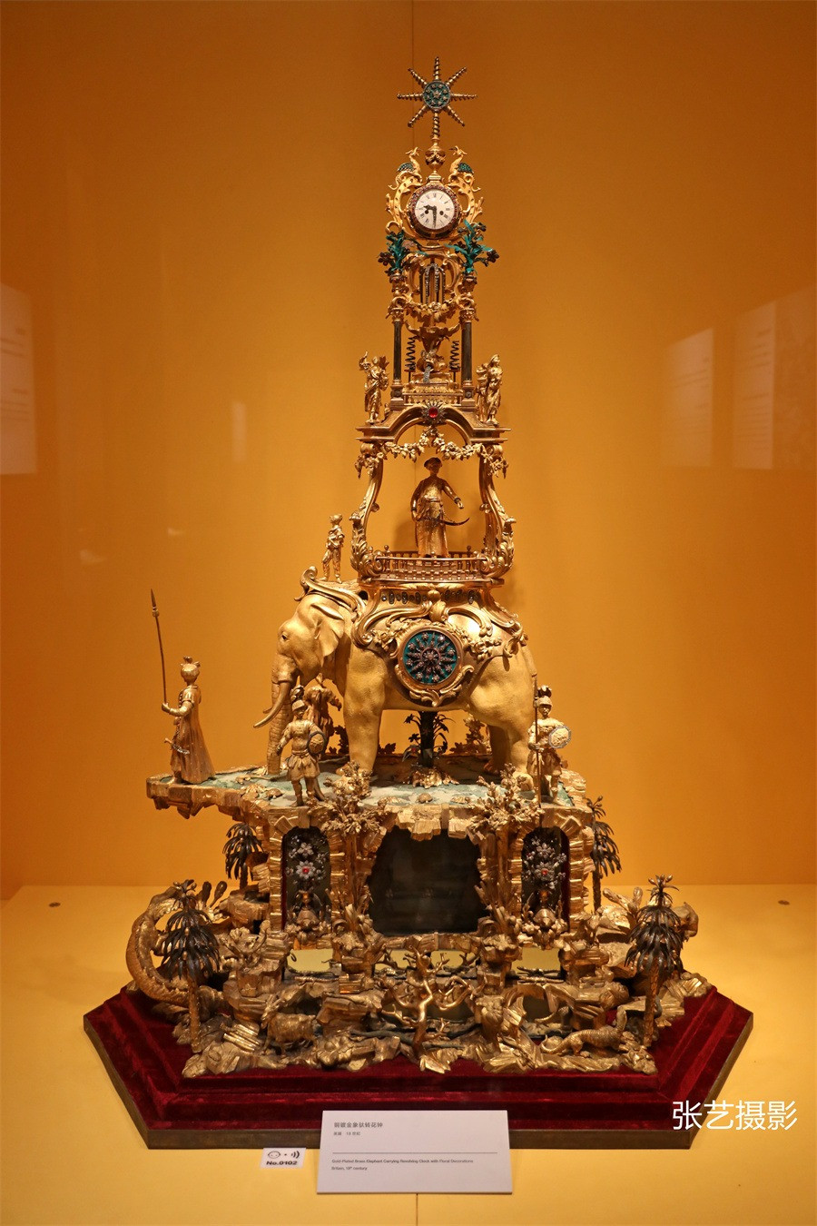 图为博物馆的镇馆之宝,来自两百年前英国的铜镀金象驮转花钟,位于一楼正中央,金色的外观、精致的做工、巨大的外形让人感觉特别贵气,其精致的局部做工足以让游客留步许久。