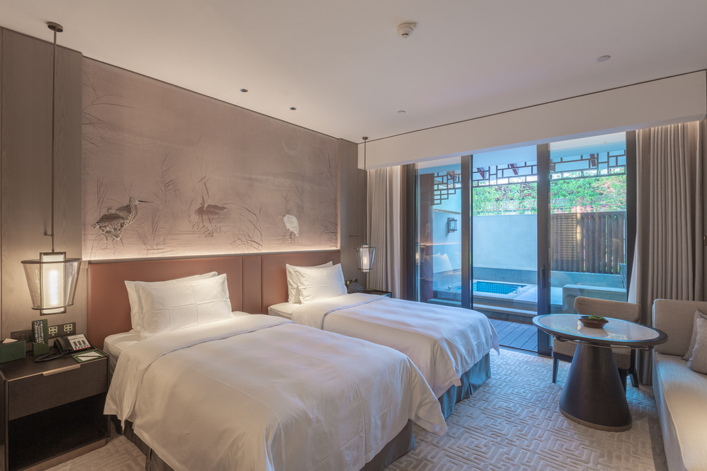 601间豪华客房,分布于山庄、酒店、水苑三个区域,风格各异,为宾客提供雅致舒适的入住选择。